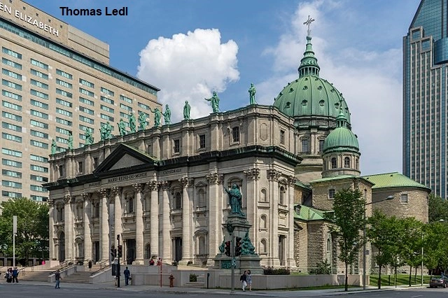 Mary, Queen of the World Cathedral or in full Mary, Queen of the World and St. James the Great Cathedral is a minor basilica in Montreal, Quebec, Canada, and the seat of the Roman Catholic Archdiocese of Montreal. It is the third largest church in Quebec after Saint Joseph’s Oratory (also in Montreal) and the Basilica of Sainte-Anne-de-Beaupré east of Quebec City. The building is 101 m (333 ft) in length, 46 m (150 ft) in width, and a maximum height of 77 m (252 ft) at the cupola, the diameter of which is 23 m (75 ft).